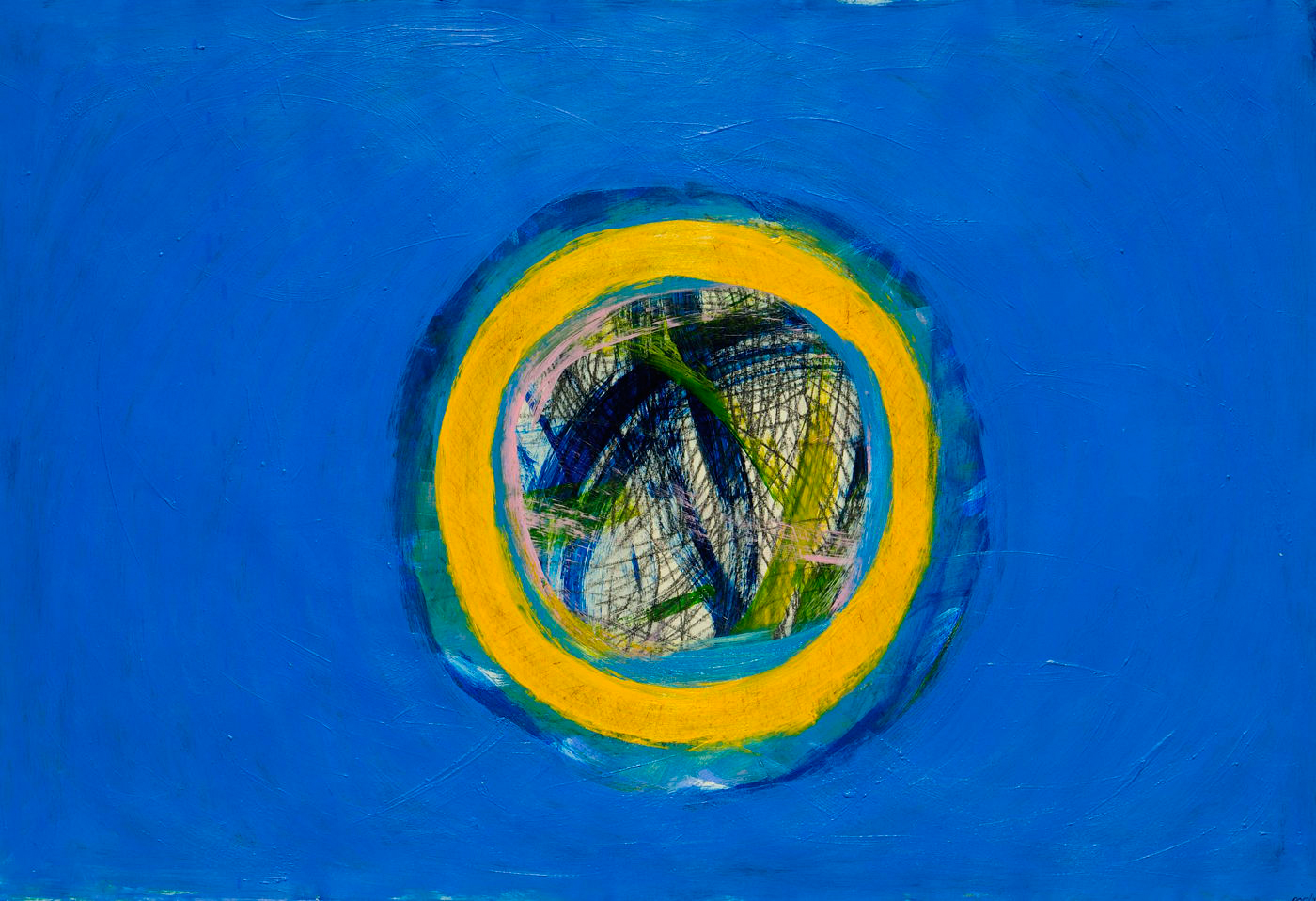 In het blauw
